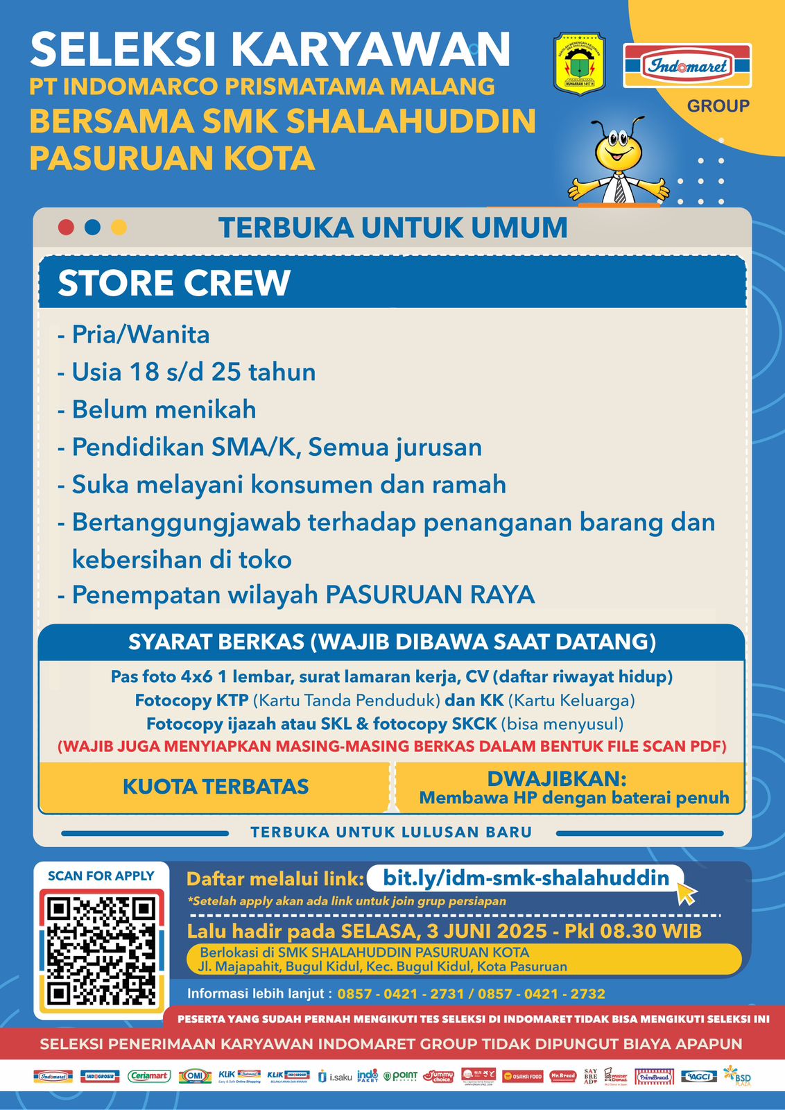 Kegiatan ini disambut antusias oleh siswa dan menjadi salah satu upaya strategis sekolah dalam memberikan peluang kerja langsung kepada lulusan. Dengan adanya program ini, diharapkan lulusan SMK Shalahuddin Pasuruan dapat terserap lebih cepat di dunia kerja, khususnya di sektor ritel modern yang terus berkembang.